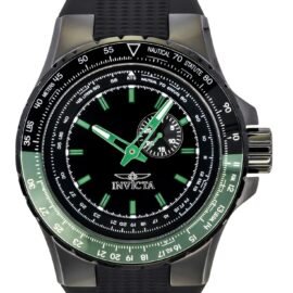 INV49731 Invicta Aviator crni sat s prikazom mehanizma, silikonska narukvica, crni brojčanik, kvarcni, 100M, muški sat