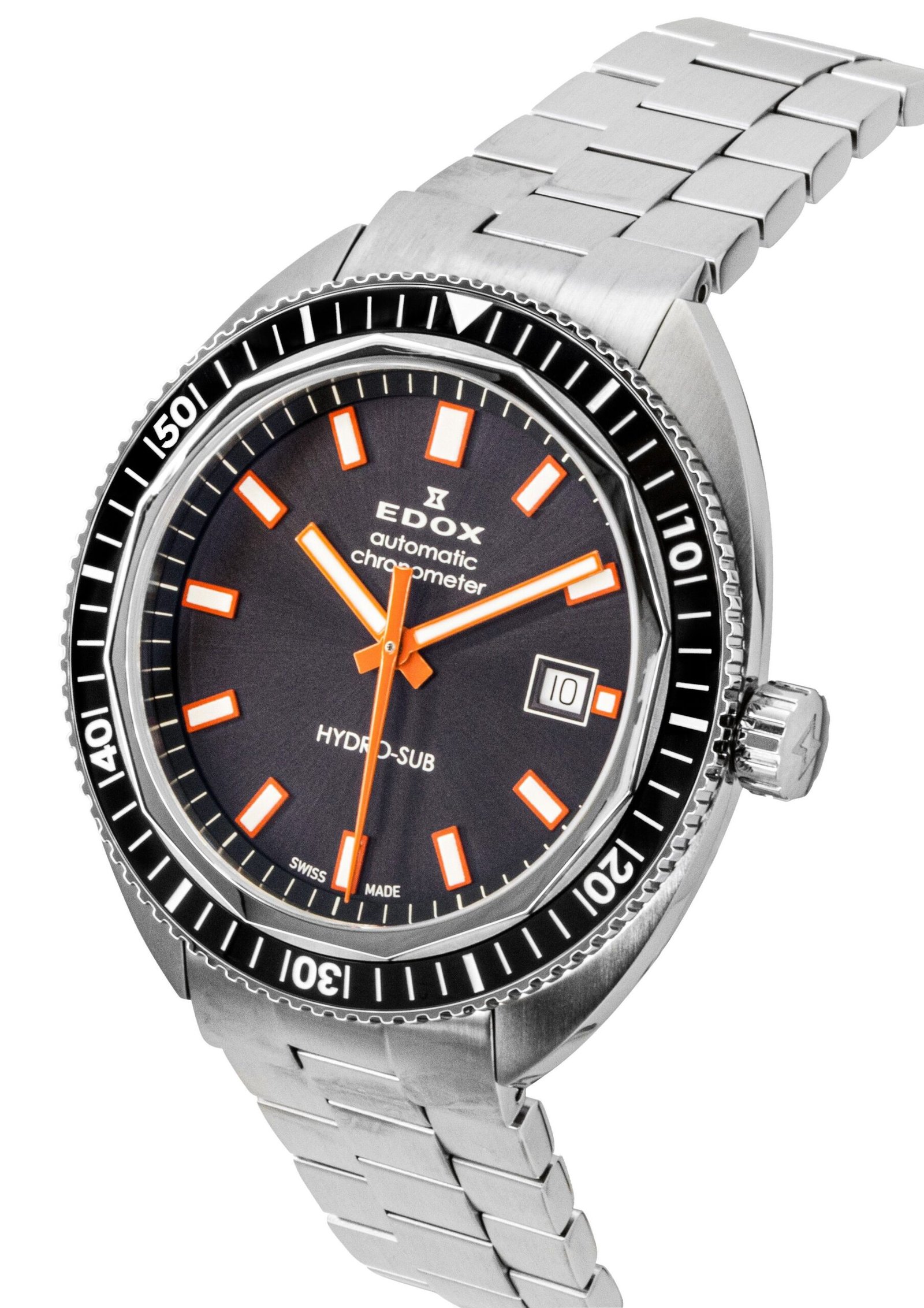 801283NMGINO Edox Hydro-Sub, Sat s prikazom mehanizma, Nehrđajući čelik, Sivi brojčanik, Automatski ronilački sat za muškarce, 300M