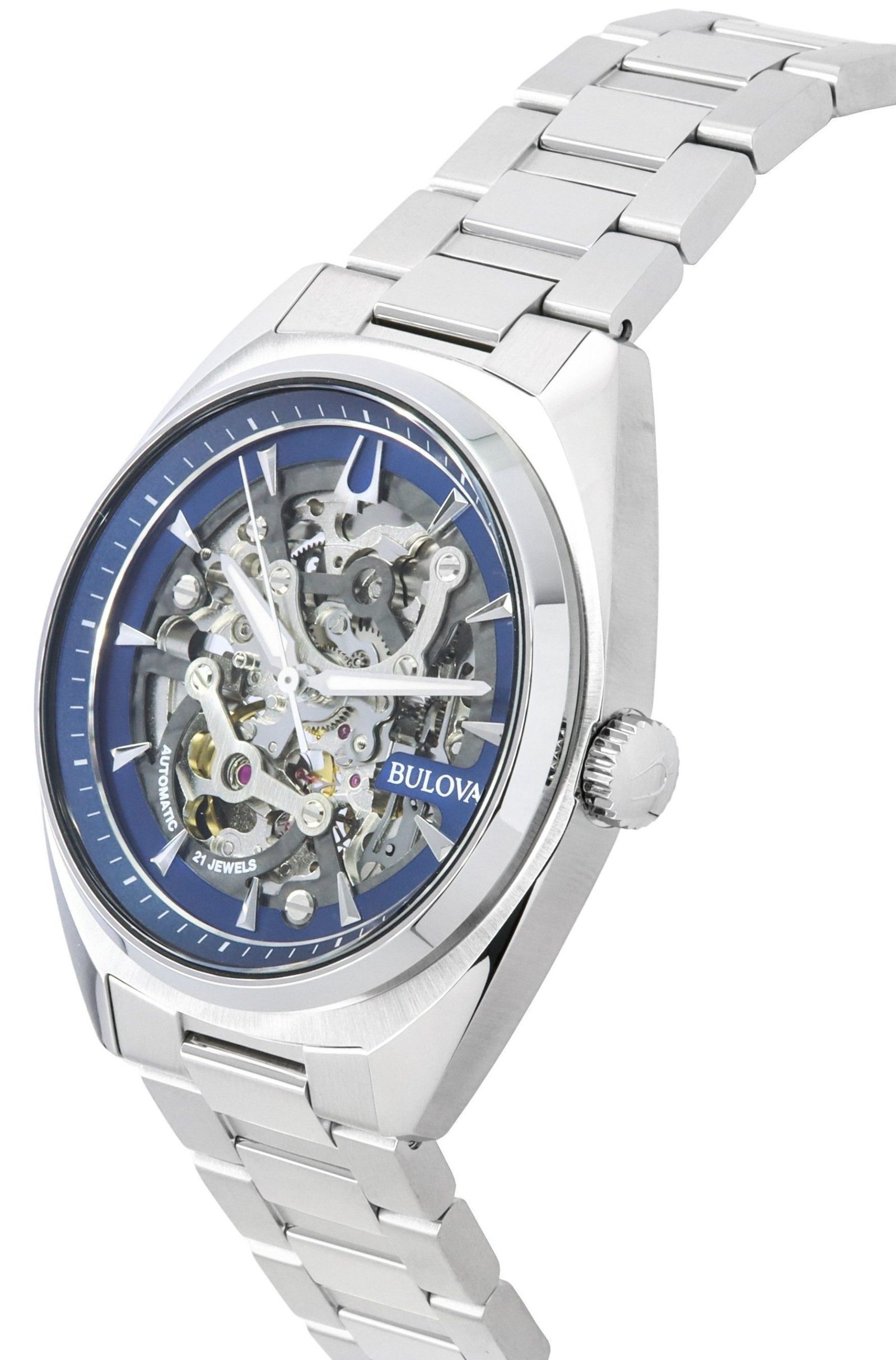 96A292 Bulova Klasični Surveyor, Nehrđajući čelik, Plavi sat s prikazom mehanizma, Automatski, Vodootporan 100M, Muški sat